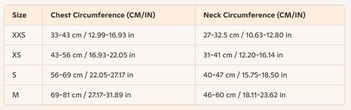 A detailed size chart is available on every product page. We recommend checking this chart against your Frenchie's measurements before ordering, as our sizes are tailored specifically for Frenchies.